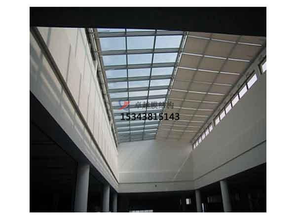 膜結(jié)構(gòu)車棚膜結(jié)構(gòu)所用的膜材料為具有、阻燃、耐久、自潔等特性的復合材料,一般由基布和涂層二部分組成?;贾饕捎镁壑w維或玻璃纖維絲編織而成,有平織和絞等多種編織方法,不同的膜結(jié)構(gòu)車蓬編織方法影響著膜材料的經(jīng)緯向力學性能指標,膜的抗拉強度和抗撕裂強度等;涂層材料主要有聚四氟乙烯和聚氯乙烯,在一定程度上提高了膜材料各項強度指標,為提高膜材料的耐久、自潔等特性,表面往往有一層氟涂層或硅涂層,膜材料的耐火、耐久及防水、自潔等性能,決定著膜材料的物理特性。