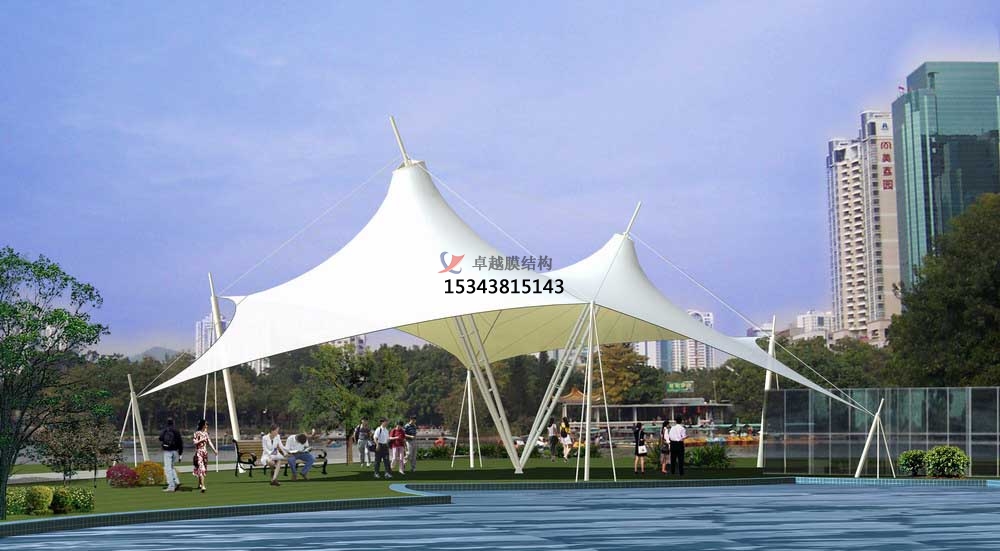 膜結(jié)構(gòu)可以從根本上克服大跨度建筑中傳統(tǒng)建筑的技術(shù)難題,創(chuàng)造開放、無遮擋的空間,提供良好的空間尺度和景觀條件。特別適用于大型城市廣場(chǎng)、大型體育場(chǎng)館等大型景觀設(shè)計(jì)中的戶外應(yīng)用,跨度大,造型新穎。