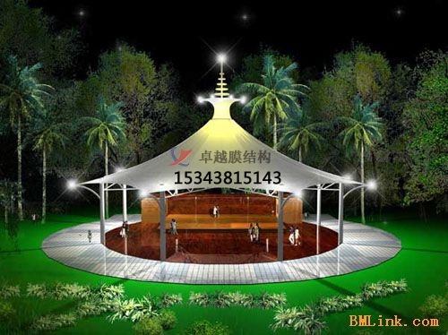 膜結(jié)構(gòu)獨(dú)特,重量輕,富有時(shí)代氣息。它也非常適合制作街頭小品,如步行街雕塑、街上的綠色亭臺(tái)樓閣、廣場(chǎng)和公園的入口等,富有個(gè)性,象征意義。另外,膜結(jié)構(gòu)便于拆卸、組裝和移動(dòng),施工方便,對(duì)臨建的成型非常方便。