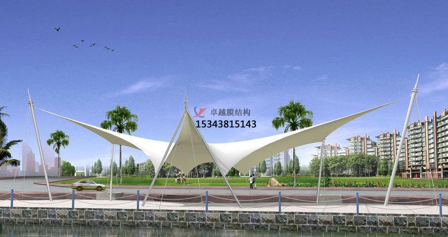 作為一種柔性材料,其在建筑上的造型變化多端,是其它材料所不能比擬的,因此也造就了景觀膜結(jié)構(gòu)遮陽(yáng)棚多變的特性,充分體現(xiàn)出建筑形體塑造力和輕盈、飄逸的動(dòng)感曲線外觀。