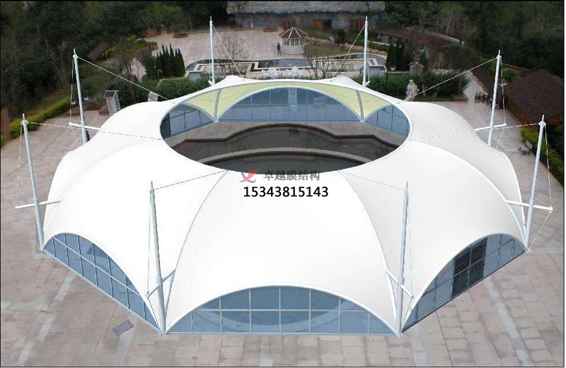因為膜材料具有透光性,實際結(jié)構(gòu)中可以清楚地看見焊縫,所以裁剪縫的布置一定要規(guī)則、合理,能形成一些漂亮的圖案以增加結(jié)構(gòu)的美感。如果膜表面設置有壓索或脊索, 那么使裁剪縫與壓索或脊索重合,使索不至于打亂焊縫的圖案布置。