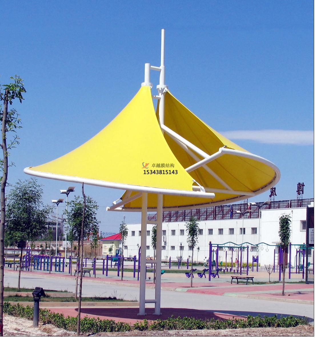 膜結(jié)構(gòu)不僅擁有美觀的造型,同時也具備形式不同的功能性,它可以是遮陽棚、雨棚、亭子、連廊、光景臺等等。