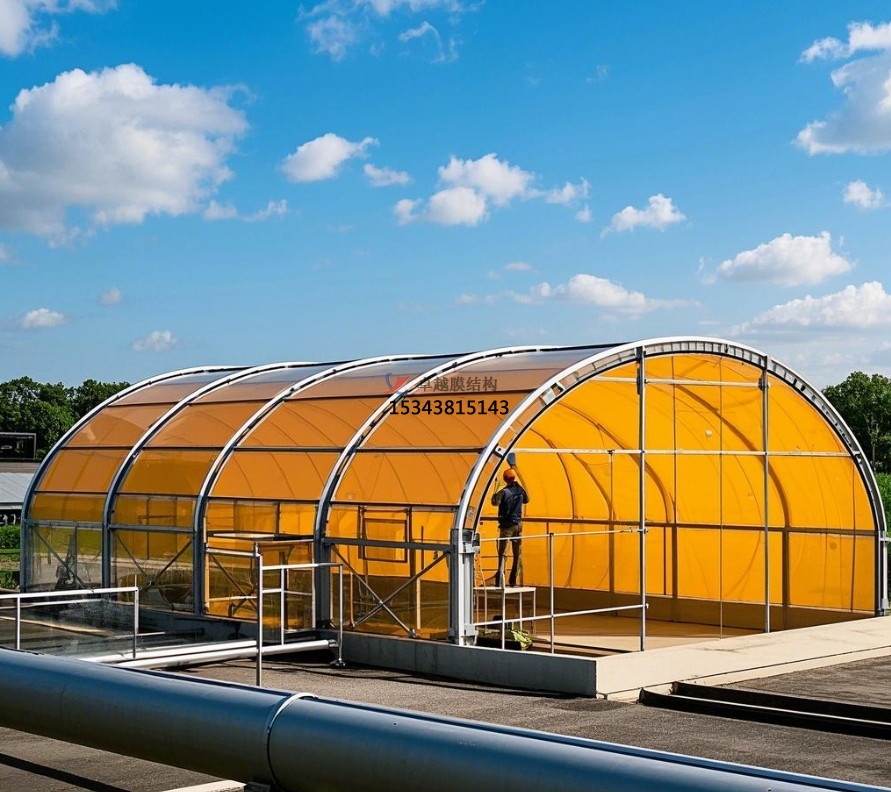 在城市生活垃圾中轉(zhuǎn)站中,膜結(jié)構(gòu)罩棚應(yīng)用普遍。如北京某區(qū)的多個(gè)生活垃圾中轉(zhuǎn)站,采用充氣式膜結(jié)構(gòu)罩棚,不僅解決了垃圾異味擾民問(wèn)題,還提升了垃圾轉(zhuǎn)運(yùn)效率,周邊居民對(duì)環(huán)境滿意度顯著提高。