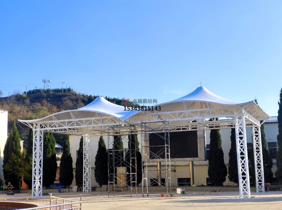 增強(qiáng)舞臺(tái)效果:舞臺(tái)膜結(jié)構(gòu)遮陽(yáng)棚的造型多樣、美觀(guān)大方,可以成為舞臺(tái)上的一個(gè)重要視覺(jué)焦點(diǎn)。通過(guò)與舞臺(tái)布景、燈光等元素的結(jié)合,遮陽(yáng)棚能夠增強(qiáng)整體的舞臺(tái)效果,為觀(guān)眾帶來(lái)更加震撼的演出體驗(yàn)。