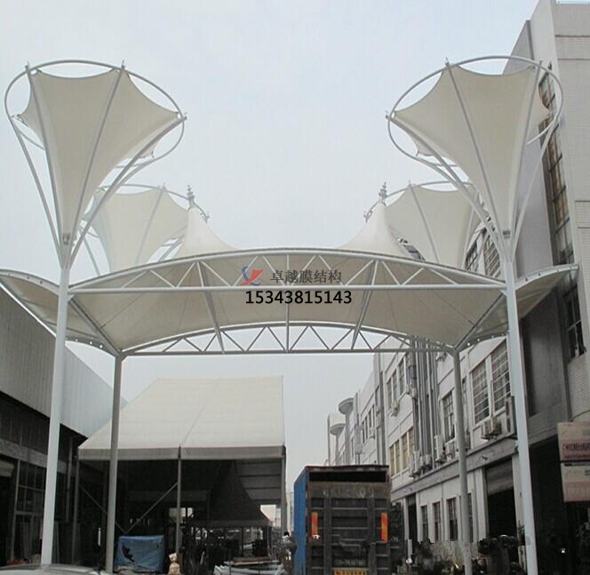商業(yè)廣場雨棚搭建,是以建筑織物,即膜材料為張拉主體,與支撐構(gòu)件或拉索共同組成的結(jié)構(gòu)體系,它以其新穎的建筑造型,良好的受力特點(diǎn)--成為大跨度空間結(jié)構(gòu)的主要形式之一。膜材料是指聚酯纖維基布或PVDF、PVF、PTFE等不同的表面涂層,配以好的PVC組成的具有穩(wěn)定的形態(tài),并可承受一定載荷的建筑紡織品。它的壽命因不同的表面涂層而異,一般可達(dá)成10-20年。