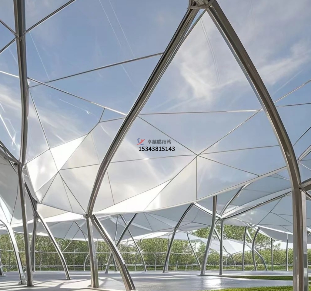 張拉索膜結(jié)構(gòu):張拉索膜結(jié)構(gòu)通過張拉使膜的內(nèi)部產(chǎn)生一定的預應力,以抵御外界的風荷載和其他荷載。這種結(jié)構(gòu)可以根據(jù)需要制成任意復雜曲面形狀,體現(xiàn)自然流暢之美,同時膜材的多種顏色選擇也使其能更好地適應周邊環(huán)境,滿足建筑效果要求。