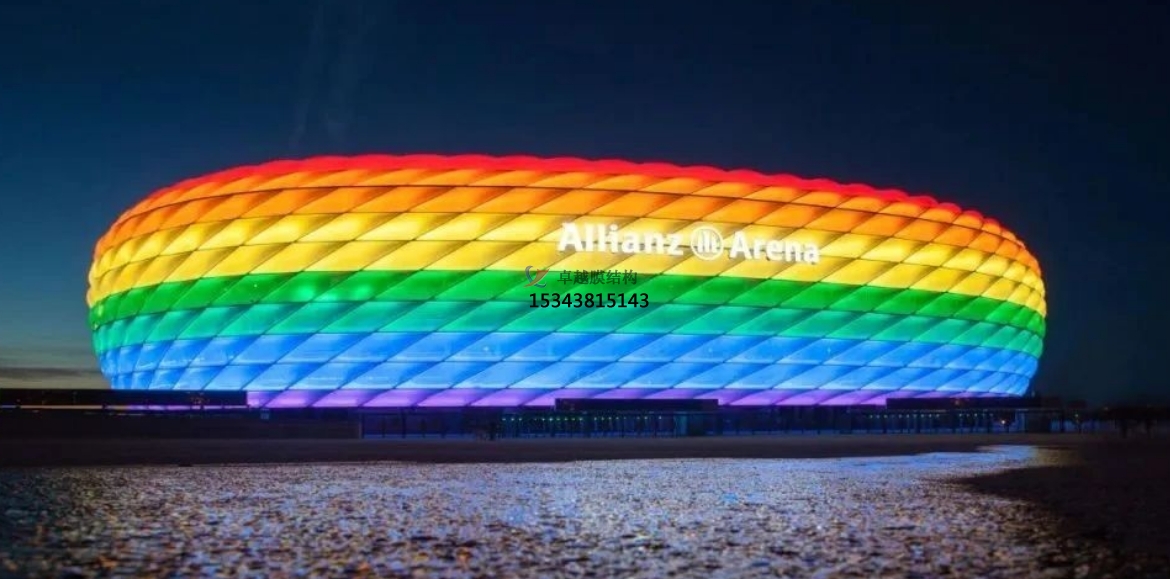 充氣膜結(jié)構(gòu):充氣膜結(jié)構(gòu)是在ETFE膜材料技術(shù)基礎(chǔ)上產(chǎn)生的,通過將兩層或多層膜通過熱熔焊接復合到一起,形成封閉的氣枕,并充入清潔干燥的空氣。這種結(jié)構(gòu)依靠膜材自身的強度和氣枕的內(nèi)壓來共同承擔外部荷載,具有輕質(zhì)、高效、環(huán)保等優(yōu)點。