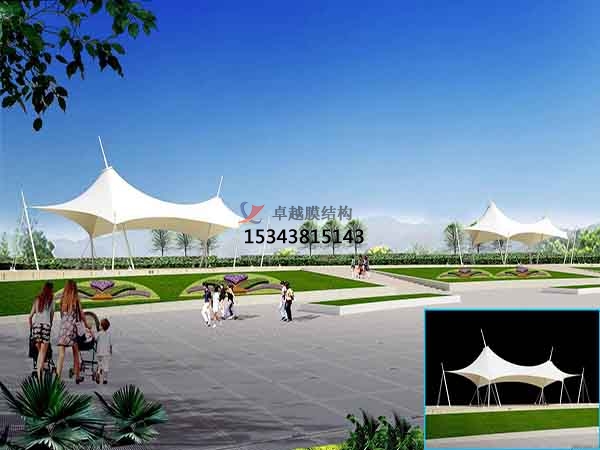 2、美觀:除了一般雨蓬不可比擬的實用、耐用、遮風擋雨的功能外,景觀膜結構罩棚更像是一座雕塑,一件藝術品,給人美的視覺享受。其柔美,其曲線,其剛柔并濟,其豐富造型,其潔白無瑕,讓人眼前一亮,回味悠長。因為景觀的頂篷是公路或地區(qū)設置名稱標牌的主要位置,是公路或地區(qū)的重要標志;所以使用景觀張拉膜結構有較好的標識招攬效果。